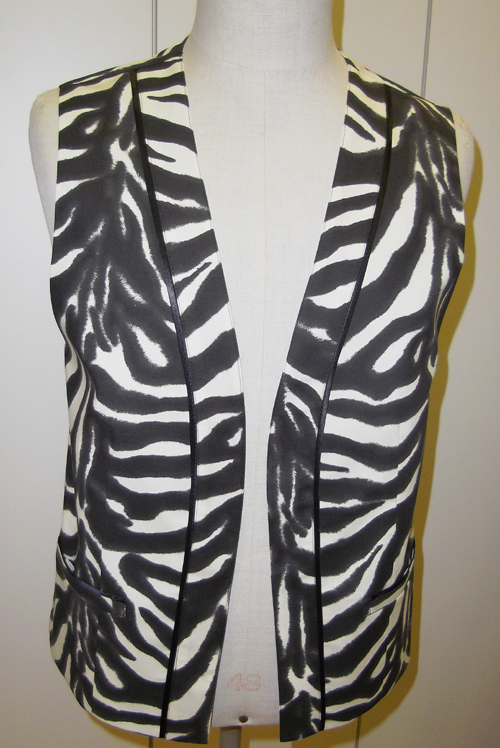 Offen zu tragendes Gilet. Dieses Modell ist in der angegebenen Grösse am Lager. Die Weste kann individuell, nach Kundenwunsch hergestellt und mit diversen Einbauten versehen werden.